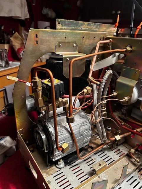 This machine now sits in my living room, hooked up to 240 power (installed by my electrician son), and pulls from a water reservoir of specially-filtered water for coffee machines (to prevent excessive scale build-up in the machine).